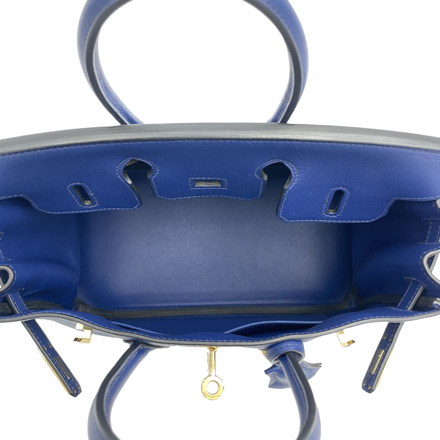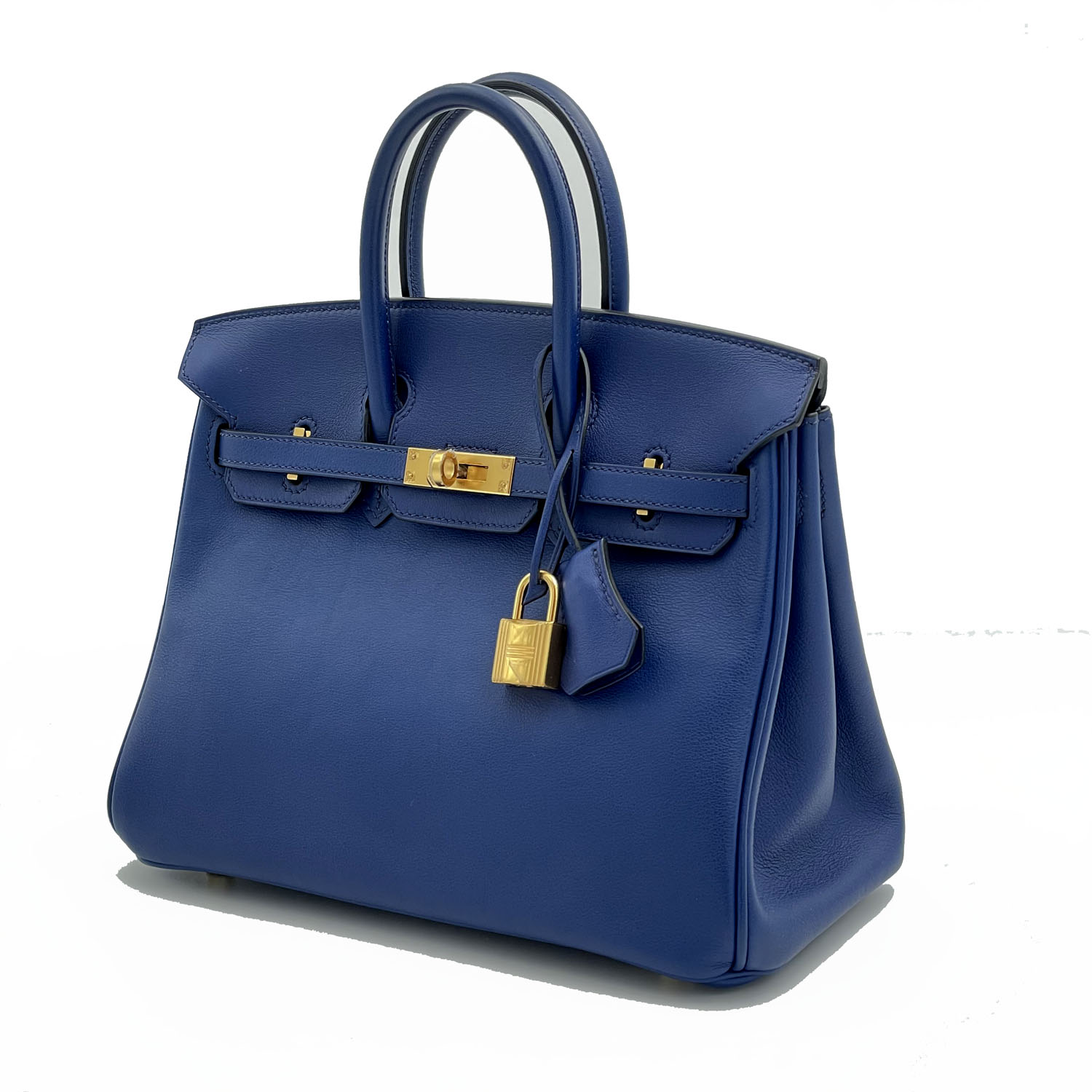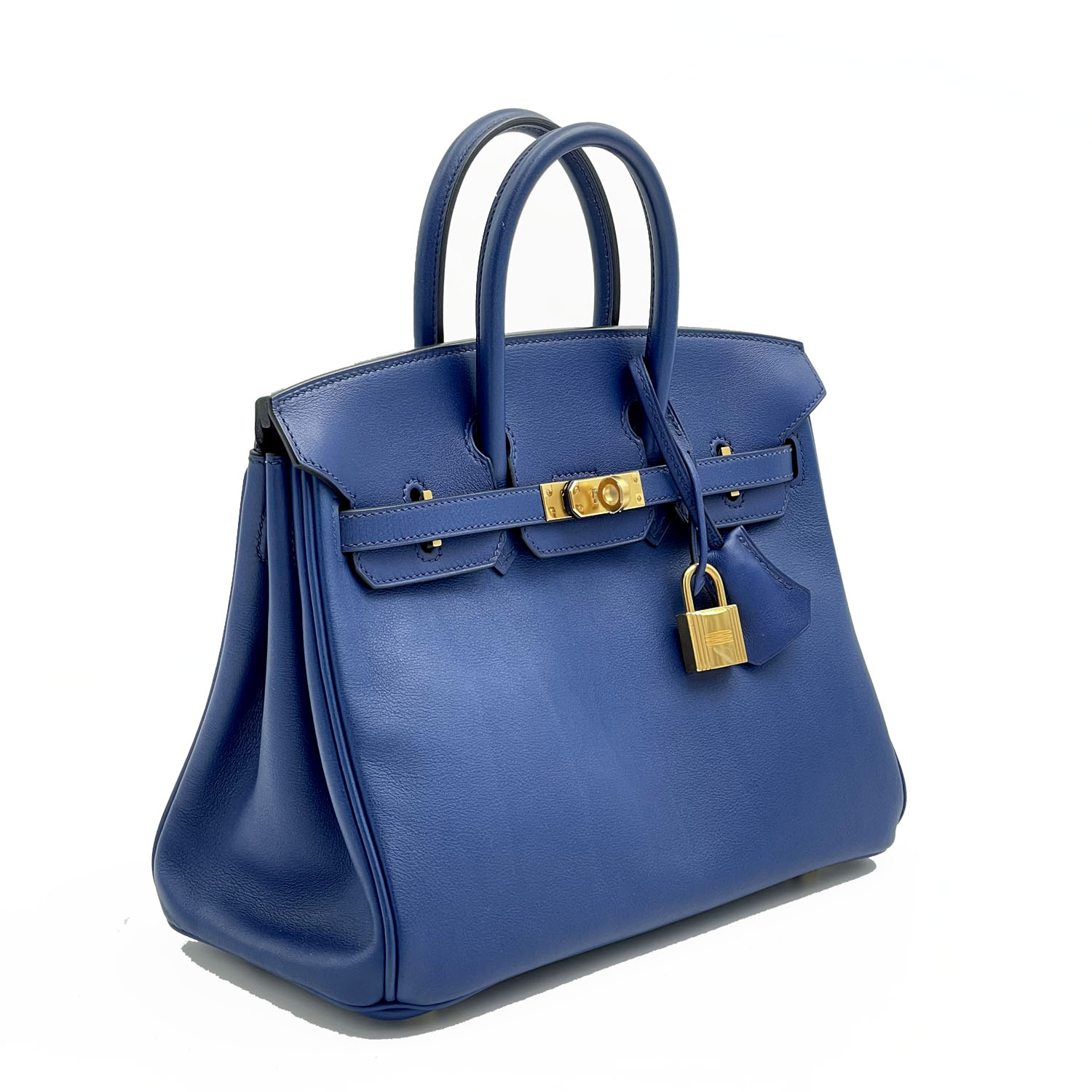 Autentica borsa Hermès Birkin 25 in pelle swift colore blu zaffiro e metalleria con finiture oro. La borsa è in condizioni ottime e questo tipo di pellame è tra i più amati tra i collezionisti di Hermès: la morbidezza e la lucentezza che questo materiale dona ai colori è impareggiabile. La borsa è del 2016 ed è completa di chiavi, lucchetto e dust bag.