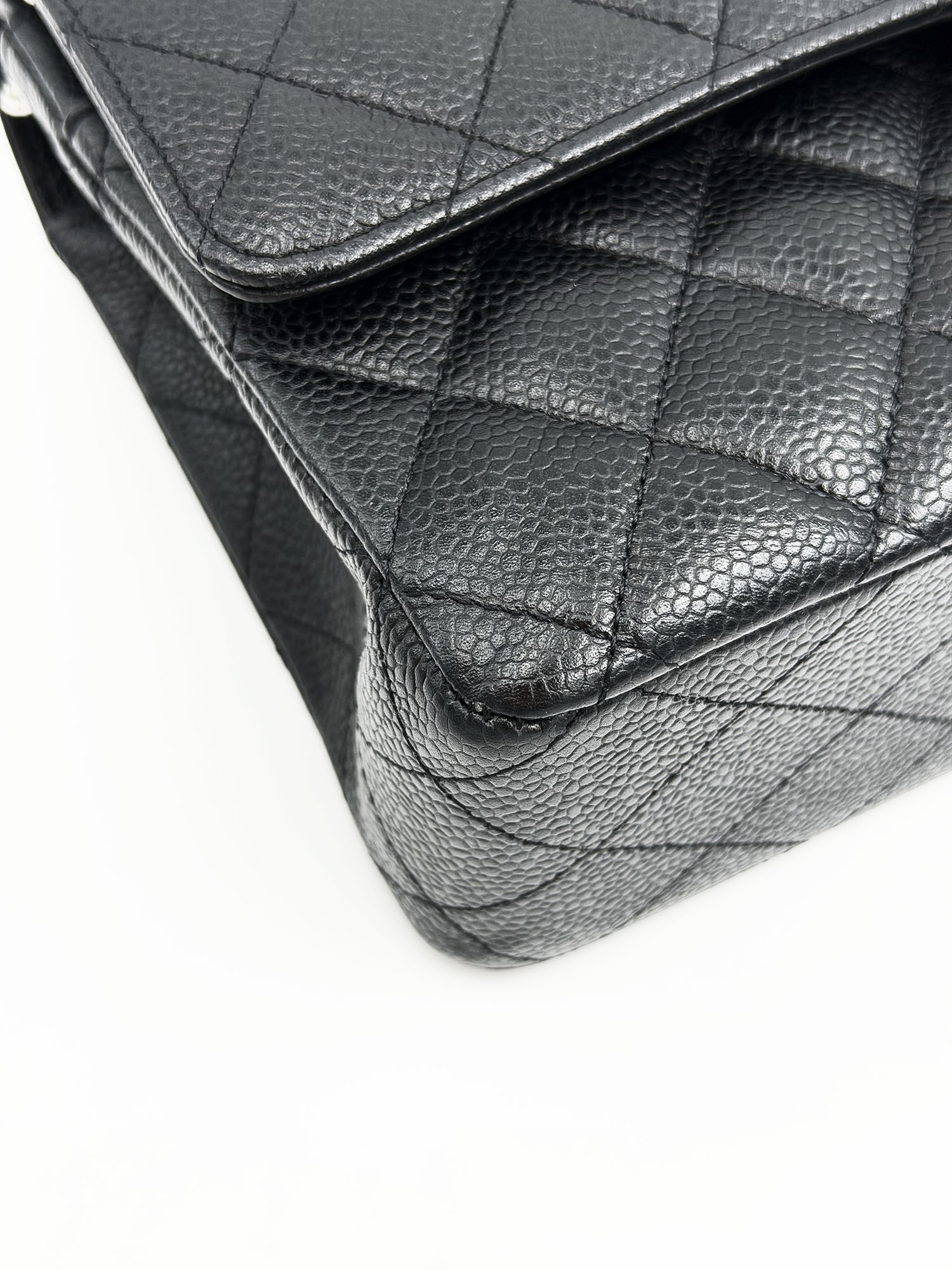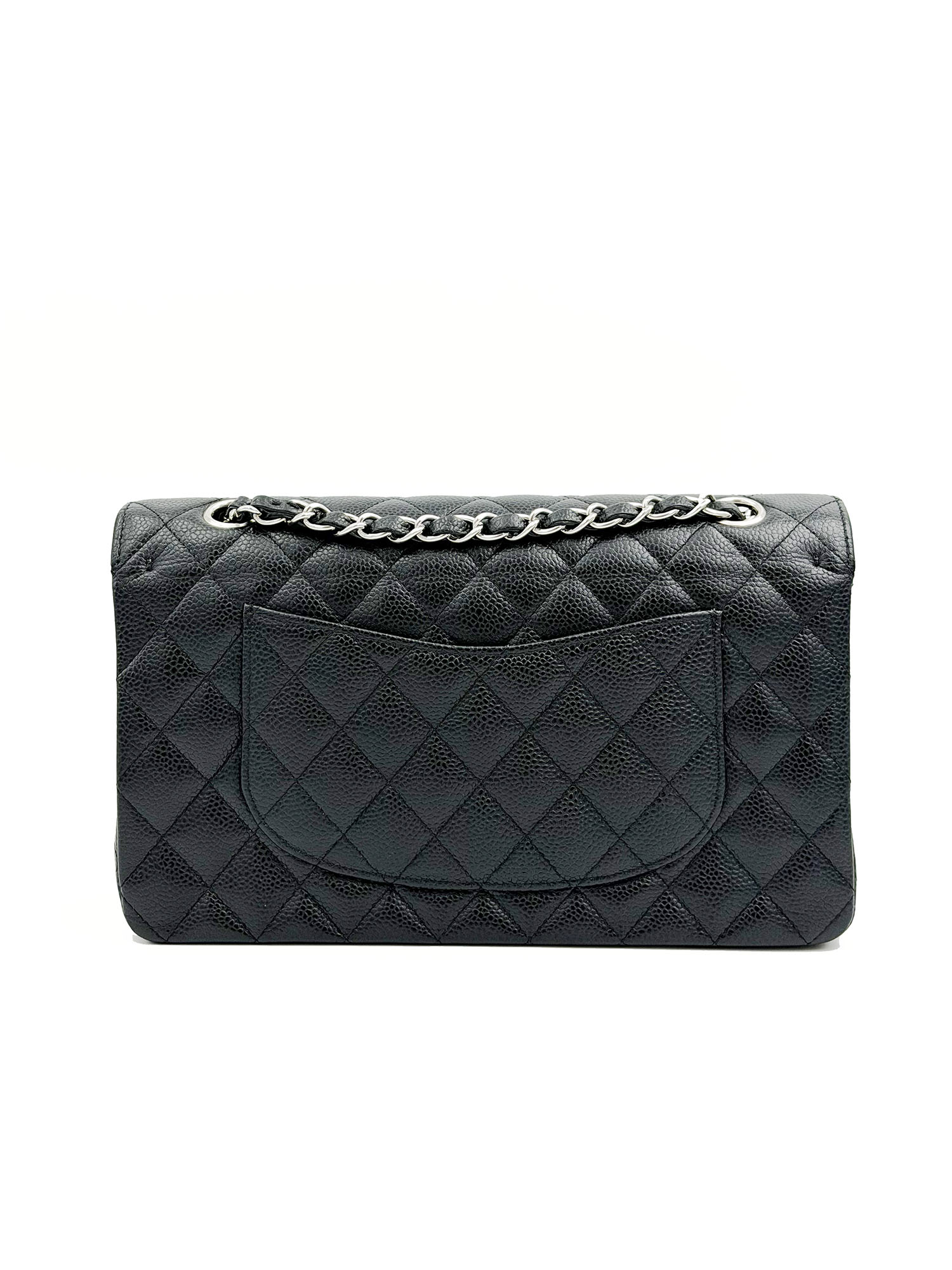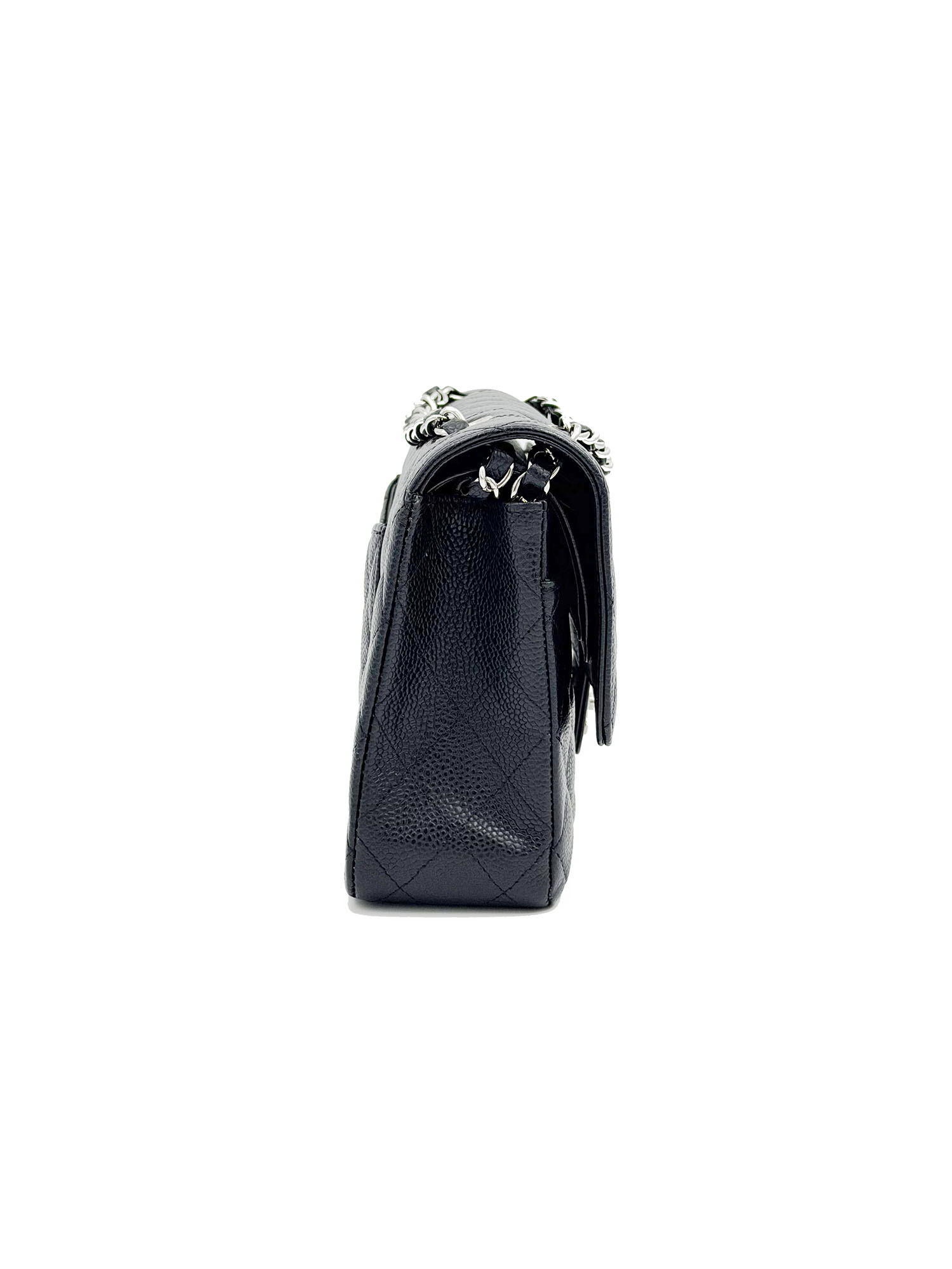 Autentica borsa Chanel classica in pelle caviar nera e metalleria argento. La borsa è degli anni 2004/2005, completa di card ed in ottime condizioni.