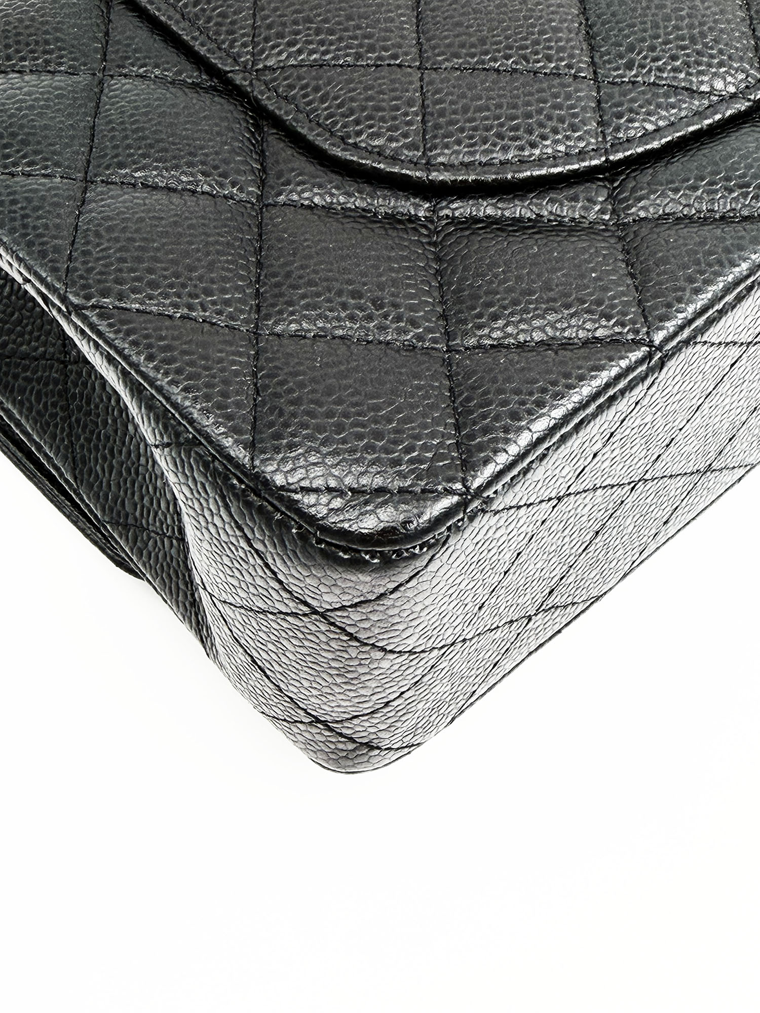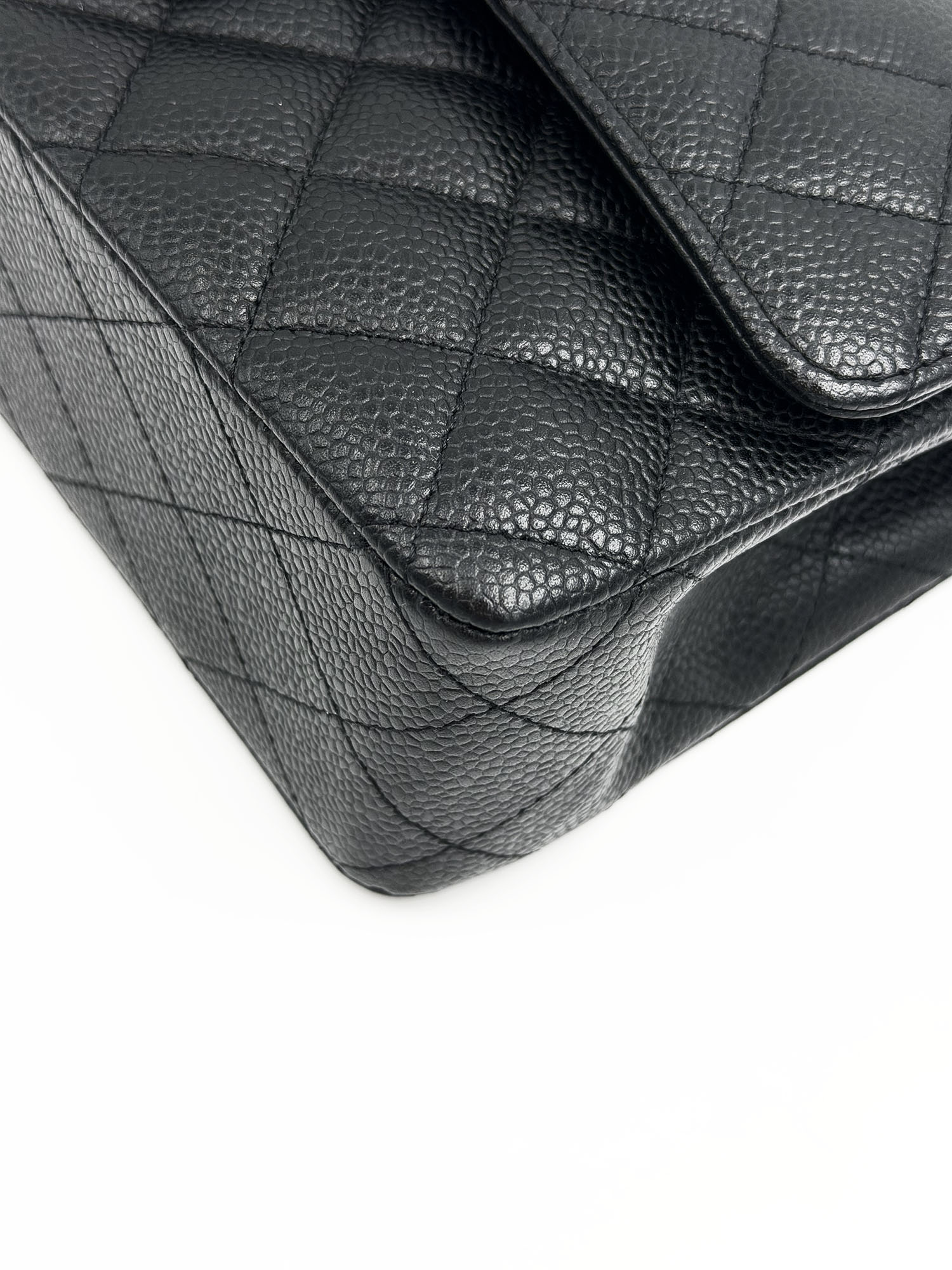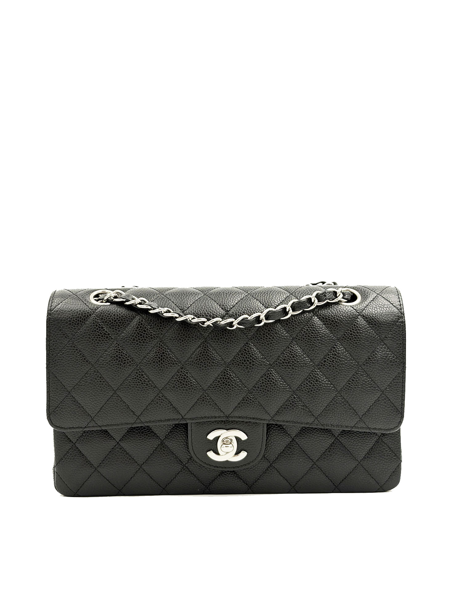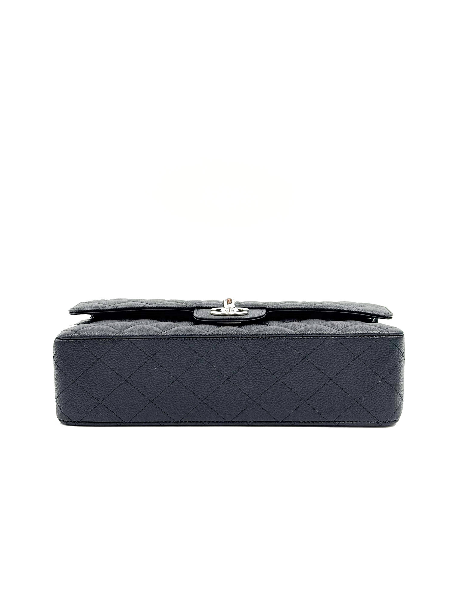 Autentica borsa Chanel classica in pelle caviar nera e metalleria argento. La borsa è degli anni 2004/2005, completa di card ed in ottime condizioni.