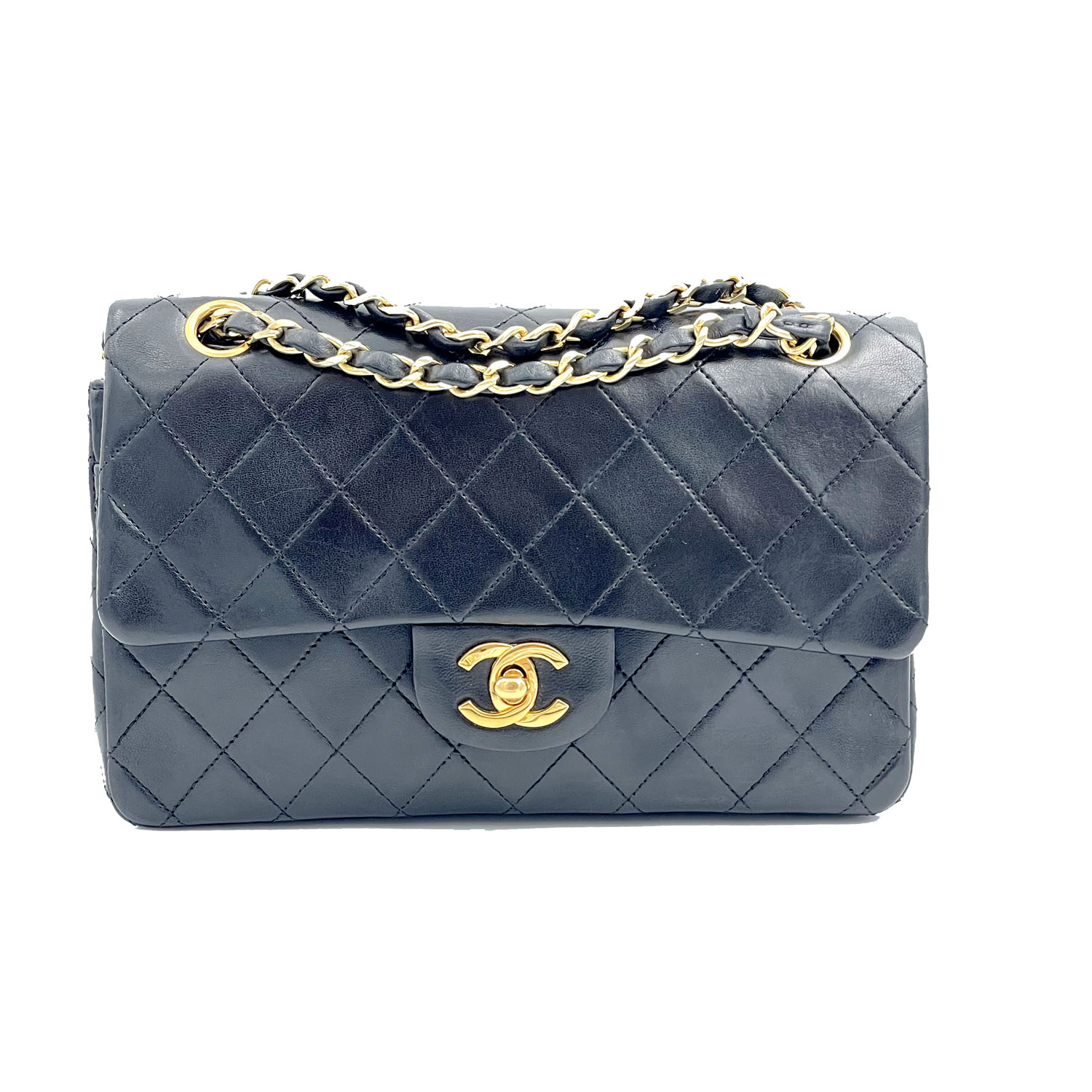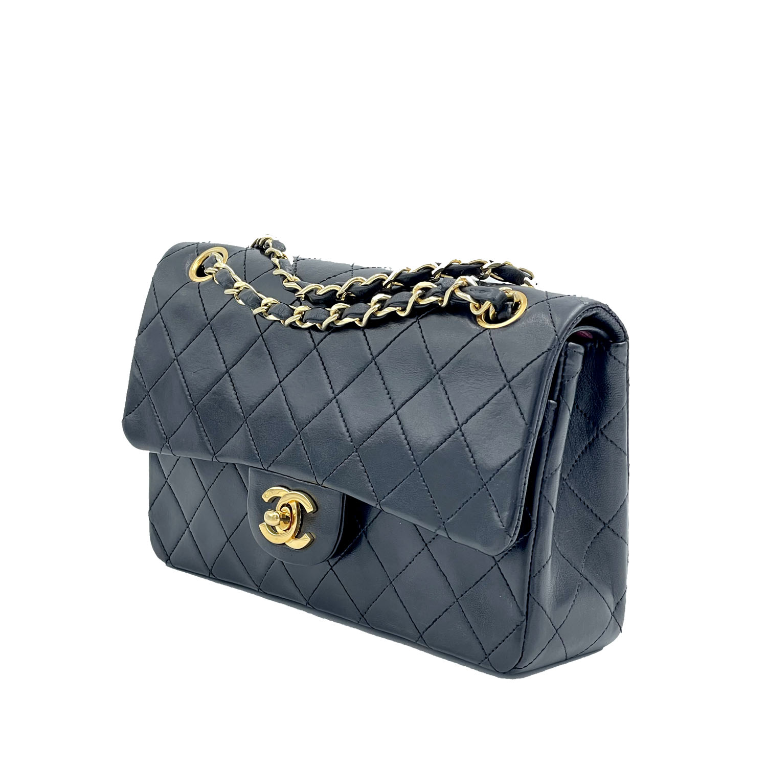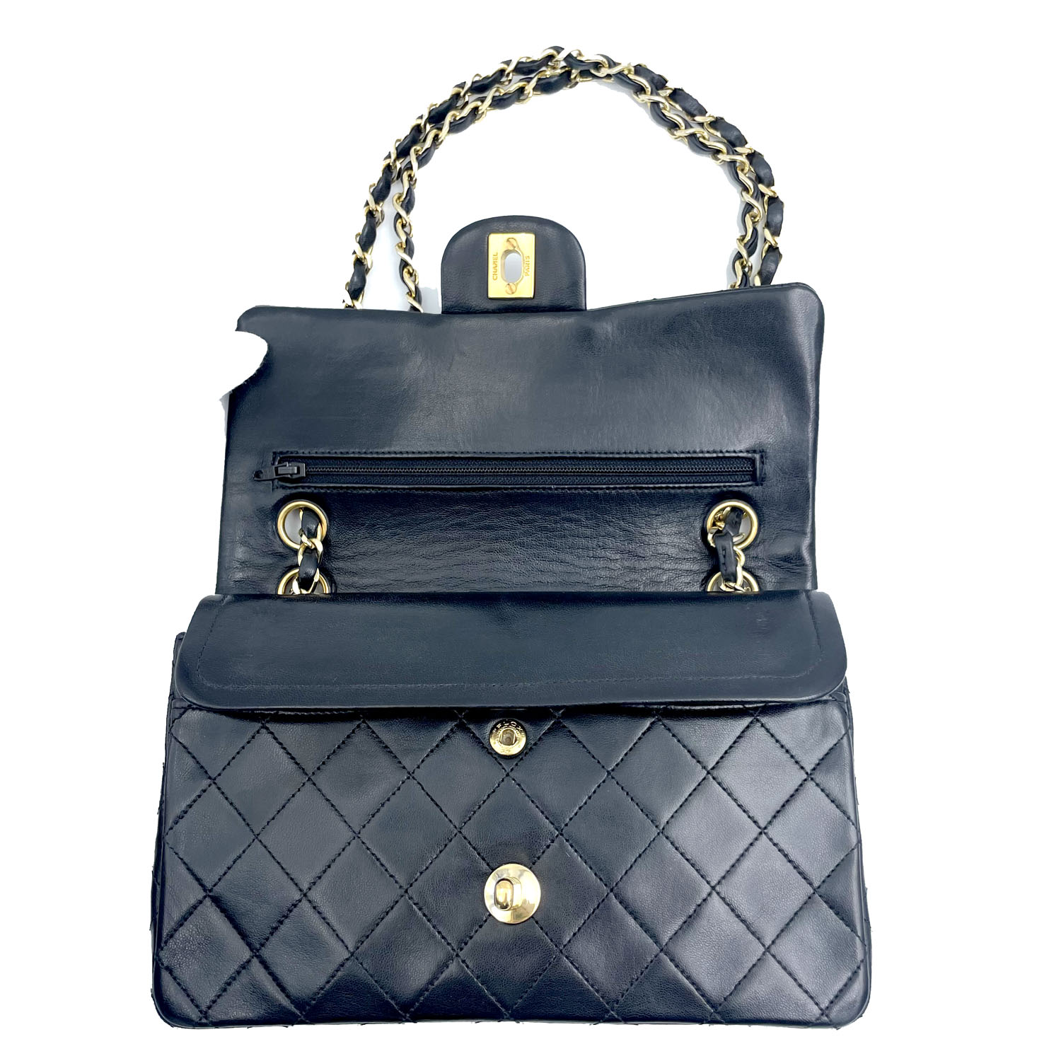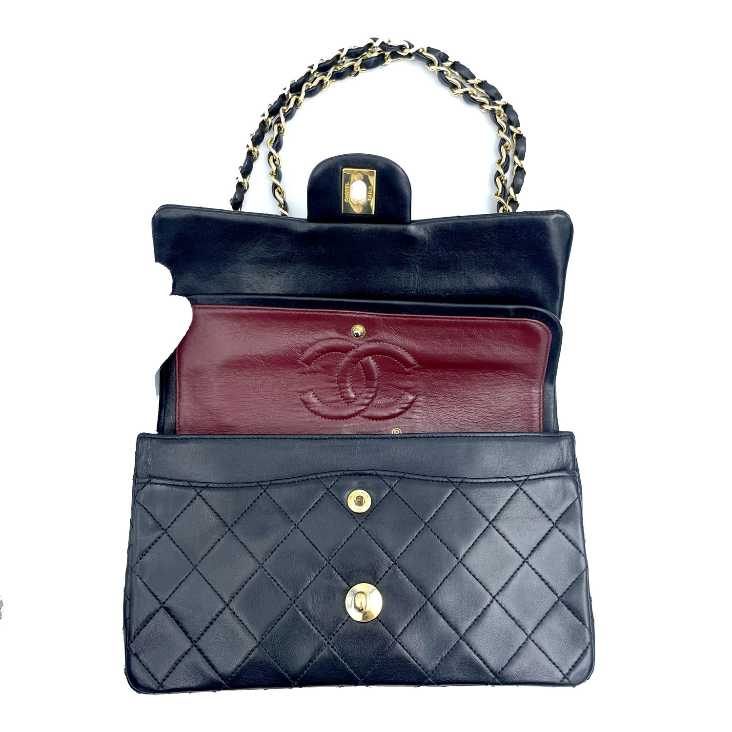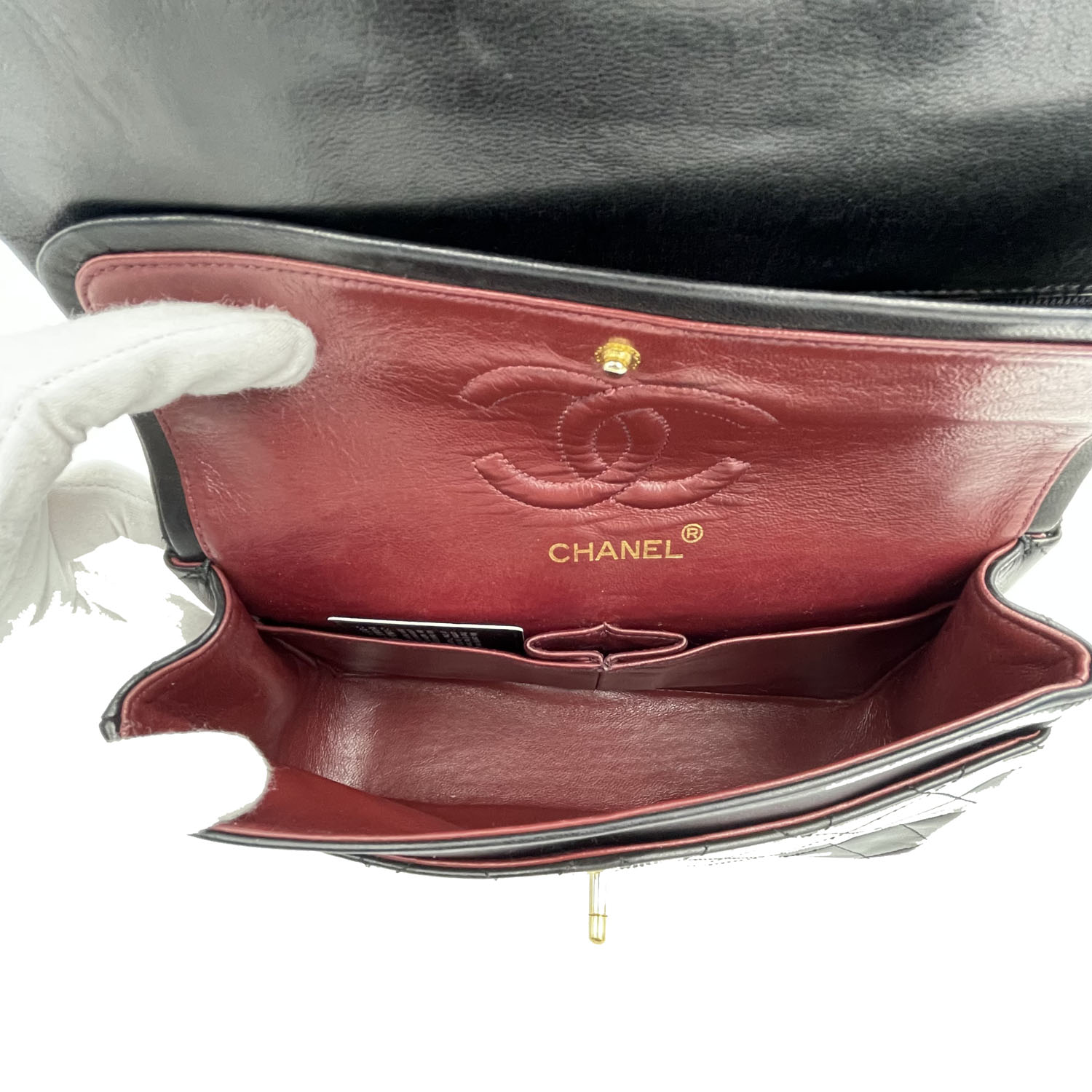 Autentica borsa Chanel modello classico in pelle di agnello e metalleria placcata oro. La borsa è vintage degli anni tra il 1986 e il 1988. Le condizioni sono molto buone ed è completa di card.